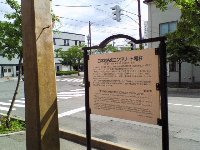 函館の街をぶらぶら歩いていた時に偶然見つけたポイント。案内板には日本最古のコンクリート電柱とあり、よく見ると四角い変わった形状の少しくすんだ電柱が立っていた。わざわざこれだけを見に来ることはないが、ベイエリアにあるので見かけたら立ち止まってみるとよいかも。