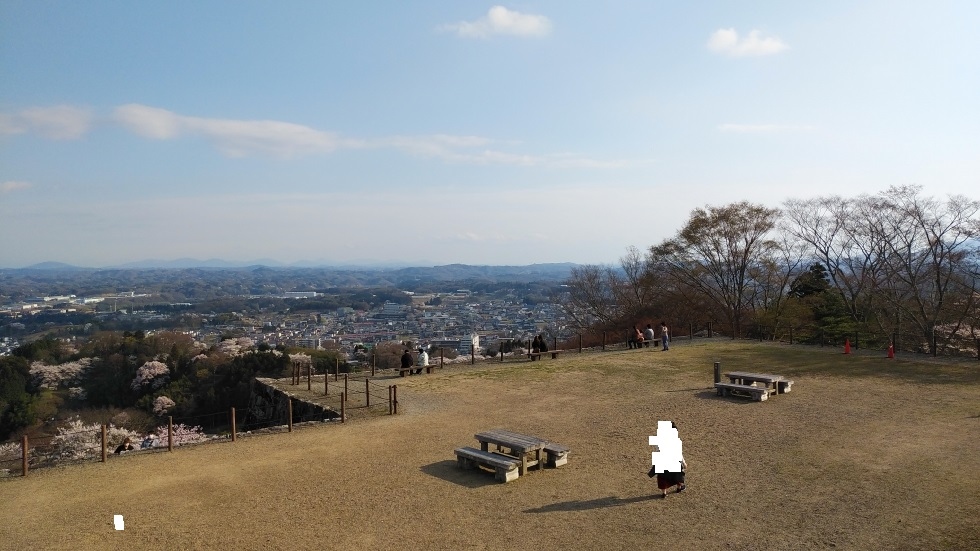 現在は公園として整備されており、頂上の本丸へは山道を15分くらい上っていくとたどり着く。頂上からの眺望は360度開けており、見ごたえがあった。