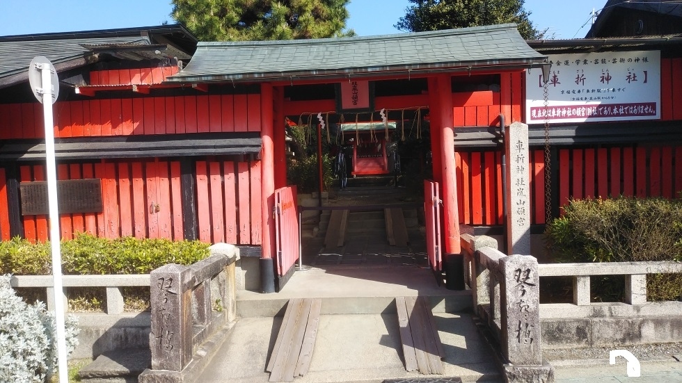 渡月橋に近く、赤い色の外観が特徴的。中には人力車が2台配置されており、神社の名前と関係があるのだろうかと感じた。- 旅行時期