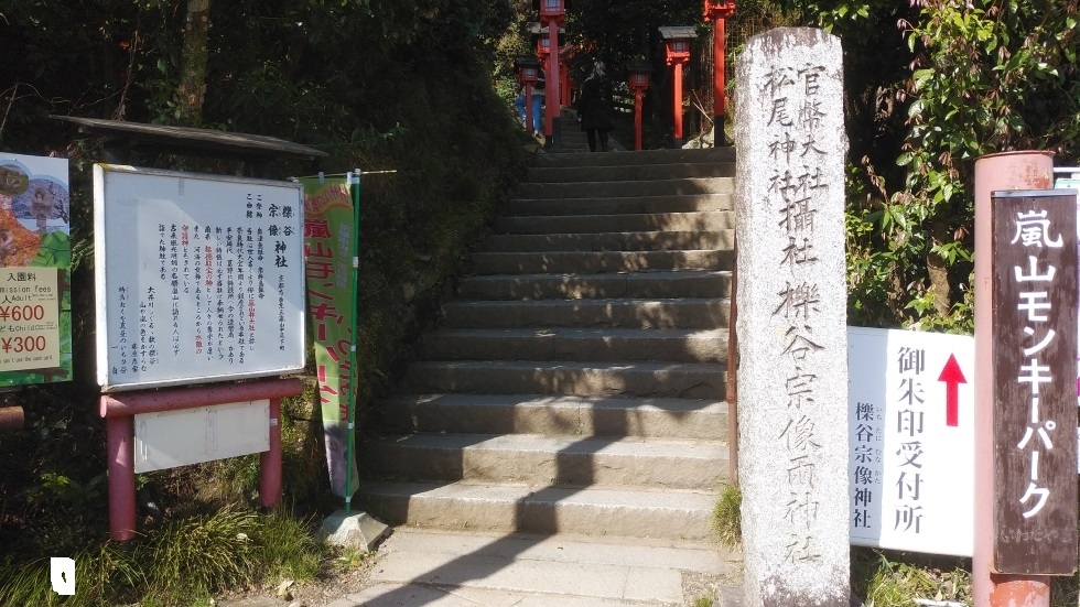 嵯峨嵐山駅から徒歩10分くらいのところにある神社。創建年代は不詳だが、8世紀ごろには記録があるようで1000年以上の歴史がある。