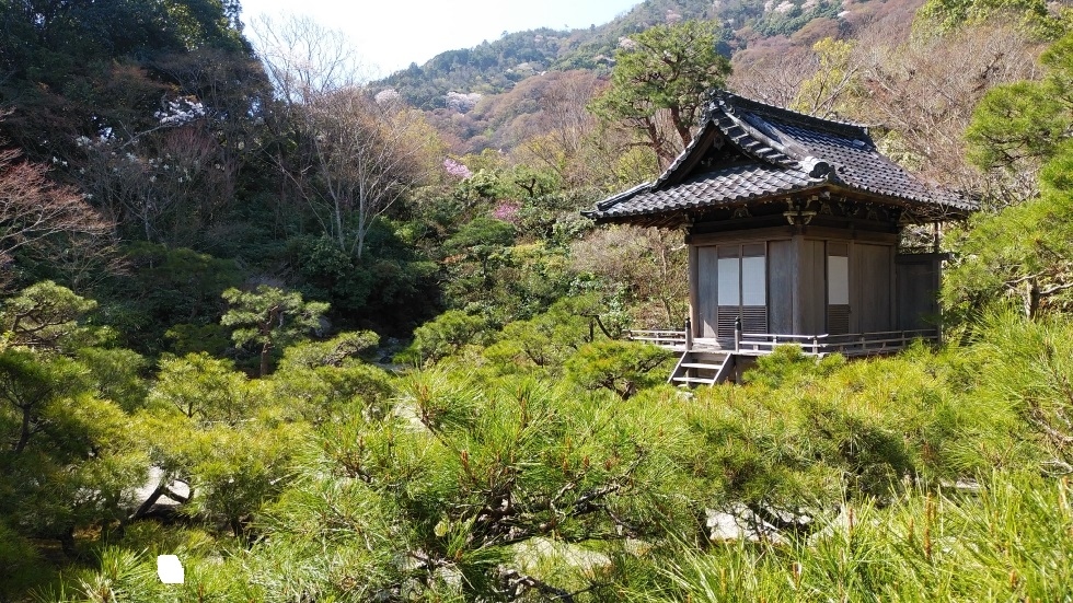 嵯峨嵐山駅から徒歩20分くらいのところにある日本庭園。回遊式庭園で山の地形を生かした立体感のある庭園が築かれていた。標高の高いところからは周辺の山々や街並みが一望でき、他では見られない庭園の楽しみ方ができた。なお、保津川方面は隣接する嵐山公園からの眺望が優れていた。