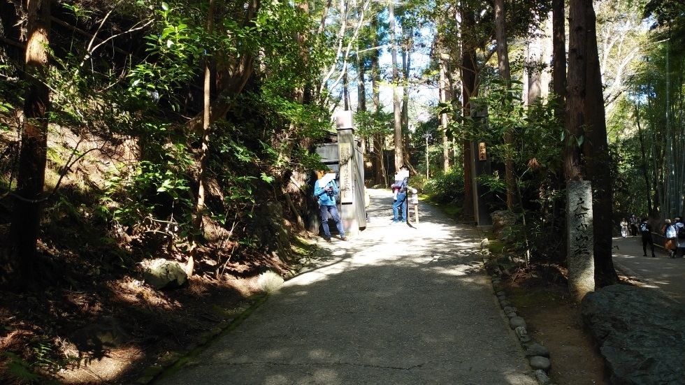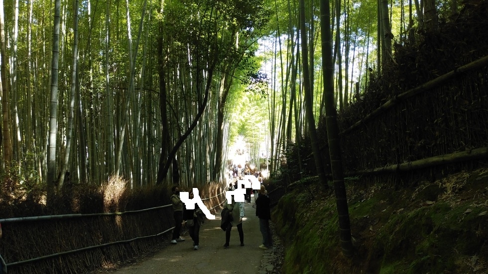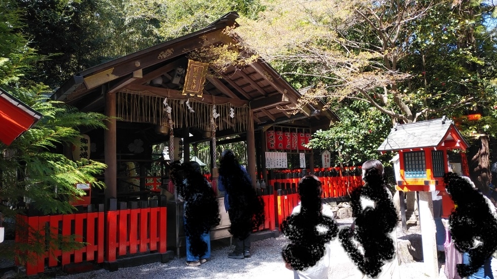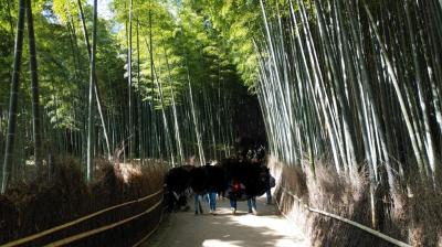 神社は竹林の小径に近く、参拝客が多くありにぎわっていた。- 旅行時期
