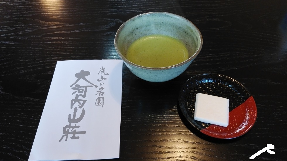 入場料は1000円だが、茶菓子と抹茶代込みのもの。そこそこ観光客はいるものの、渡月橋や天龍寺と比較すると落ち着いていた。- 旅行時期