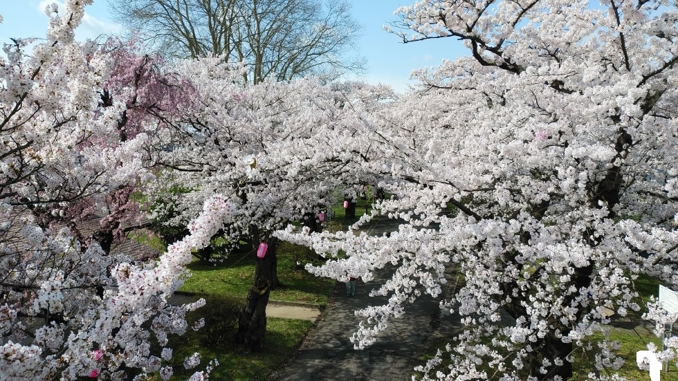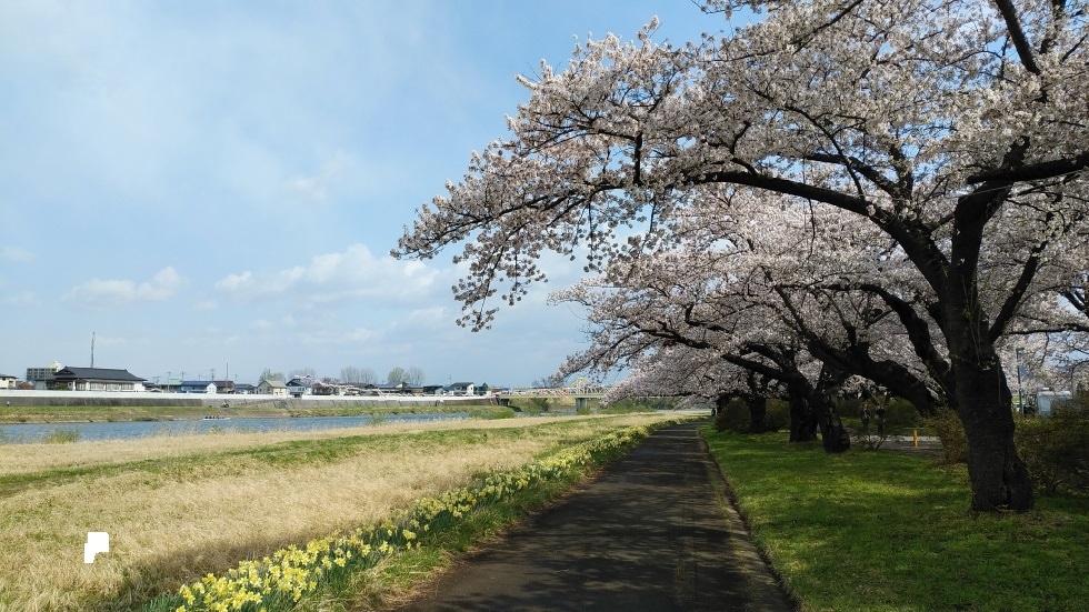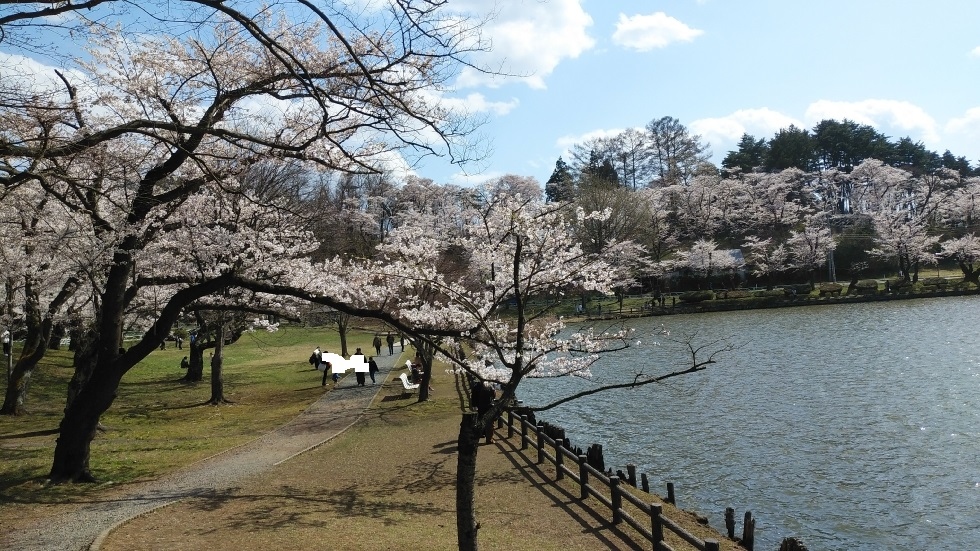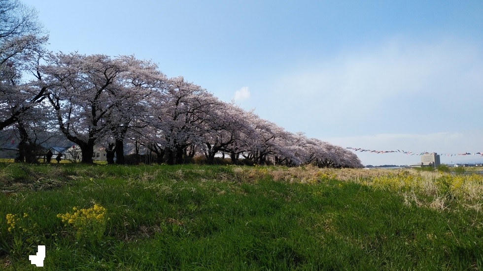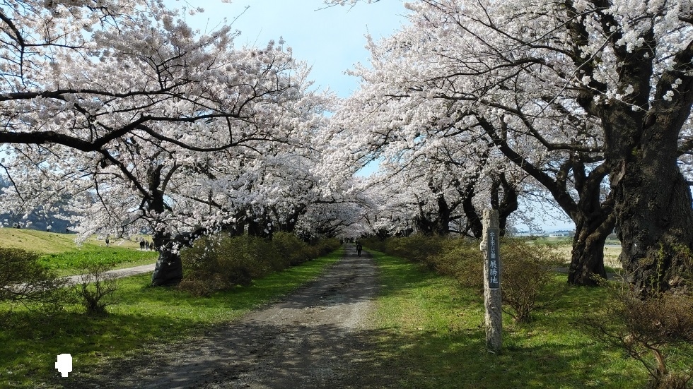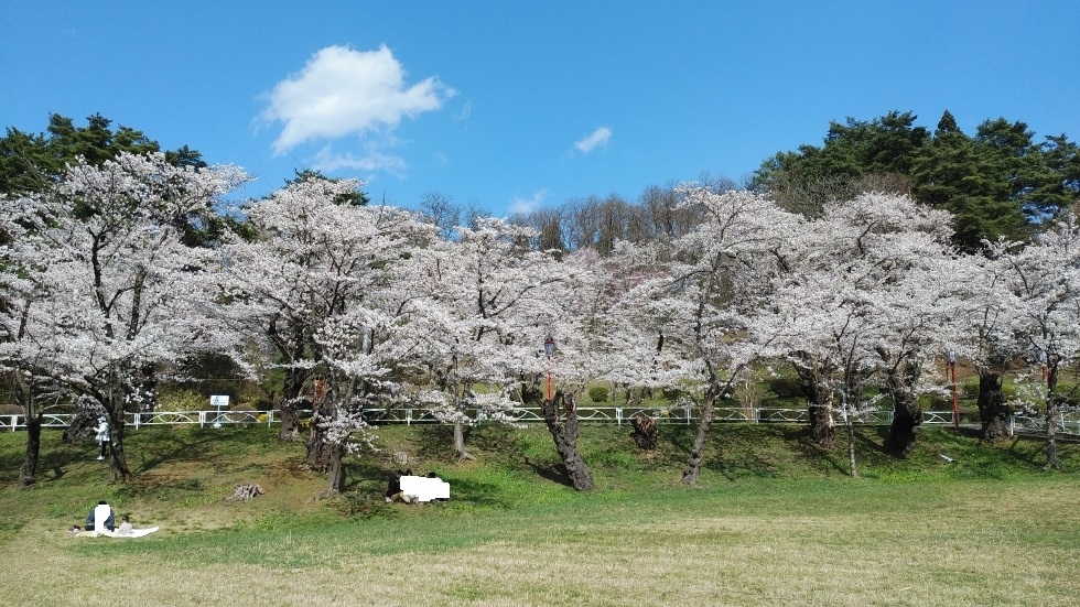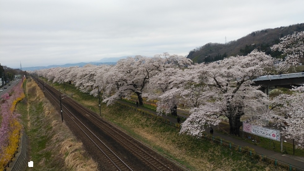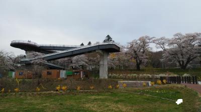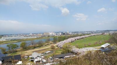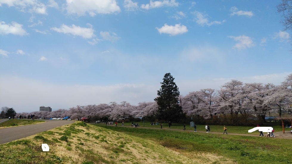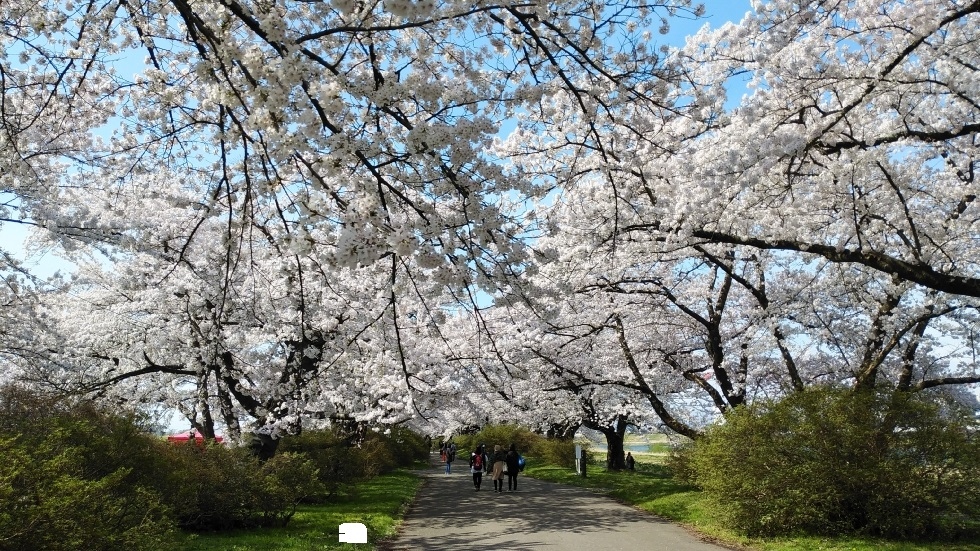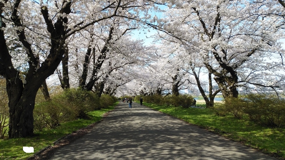 北上駅から徒歩15分くらいのところにある公園。北上川に沿って、2キロほどの長さにわたって桜並木が続いている。園内の桜は約1万本だそうだ。