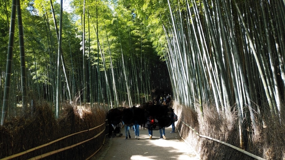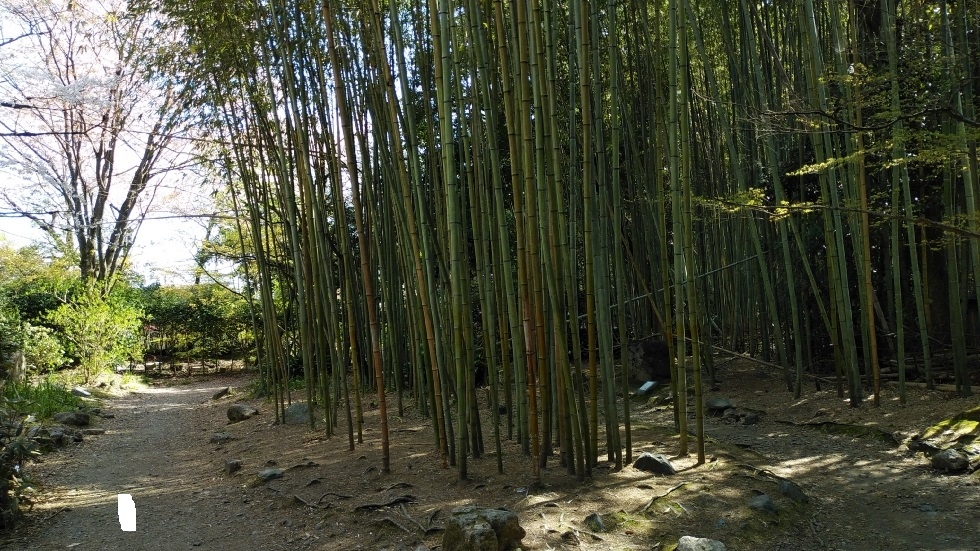 約400メートルにわたって続く竹林は風情が感じられる。平たんな地形ではなく、一部坂道もあった。