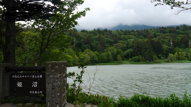利尻島一周観光で立ち寄った場所の一つ。標高の高い位置にある沼で晴れた視界の良い日には水面に映し出される利尻山の景観が見事な沼。その景色を期待して訪れたもののこの日の天気はいつ崩れるかわからない曇り。フェリーターミナル付近で見えなかった利尻山はこの場所でも見えなかった(2014年7月)。