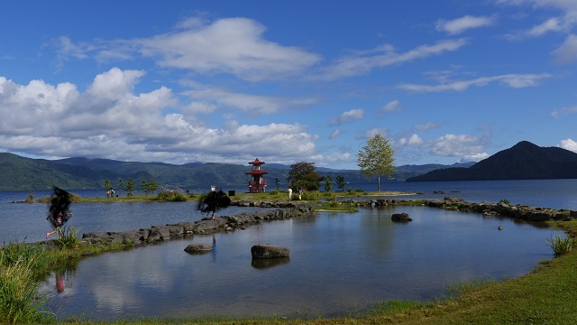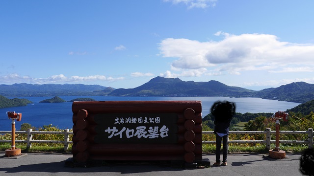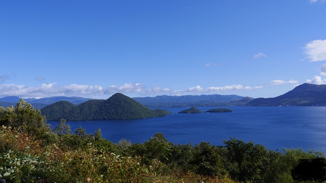 洞爺湖を様々な角度から眺めようと一周したときに立ち寄る。湖岸ではキャンプが張れるようでシルバーウィーク期間中ということもありにぎわっていた。いつもいる洞爺湖温泉街の対岸上の位置にあるのか正面奥に温泉街がかすかに見える。洞爺湖は晴れた日、湖面の色がきれいだと思う。