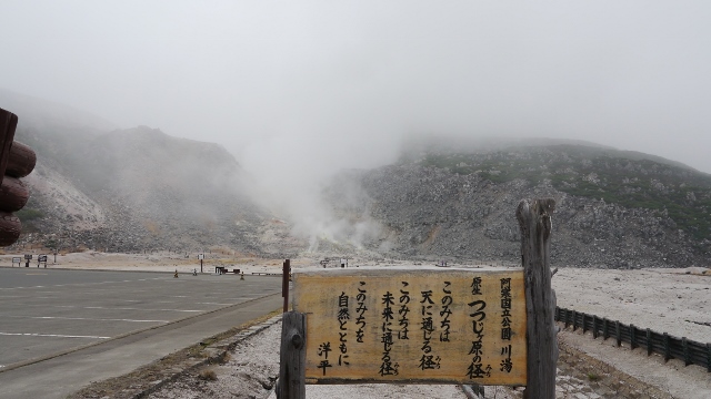 つつじヶ原自然探勝路は硫黄山から川湯温泉街までつづく約2.5?の遊歩道。歩道沿いにはハイマツやイソツツジの群生が広がり、他ではなかなか見られないこの地ならではの光景。いずれの木々も背丈が短いので硫黄山などの見晴らしがよく絶景。群生が茂り、歩きづらい部分もあるが時間があればおすすめの遊歩道である(2012年5月)