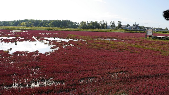 網走市郊外の観光ポイント。サンゴ草の群生地となっている当地は9月ごろになると真っ赤に色づき、一面が真っ赤な絨毯のような光景が繰り広げられる。普段は静かそうな雰囲気の湿地帯だが9月のシーズン中の訪問だったのでツアー客などで混雑していた(2012年9月)。