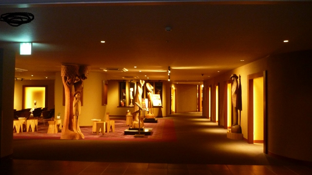 フロントに入ると数々の彫刻やデザインにアイヌ文化の雰囲気が感じられ旅の気分を盛り上げてくれる。温泉は隣接の鶴雅ウイングスの大浴場も利用でき、種類豊富な湯船を楽しむなら遊久の里の大浴場を、掛け流しを楽しむならウイングスの大浴場をと使い分けができた。また、それぞれ泉質が異なるようだった。客室はツアー客のほか春節で海外からの宿泊客で混雑していたので街側眺望の狭い部屋しか予約できなかった。鶴雅系はこれまで何か所か宿泊したがいずれもある程度の満足感を得られ、旅の気分を盛り上げる演出に長けていると感じた。