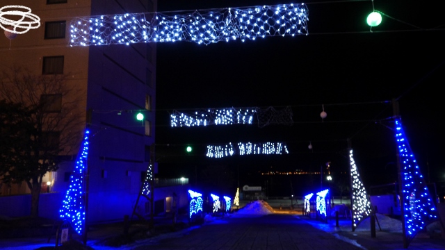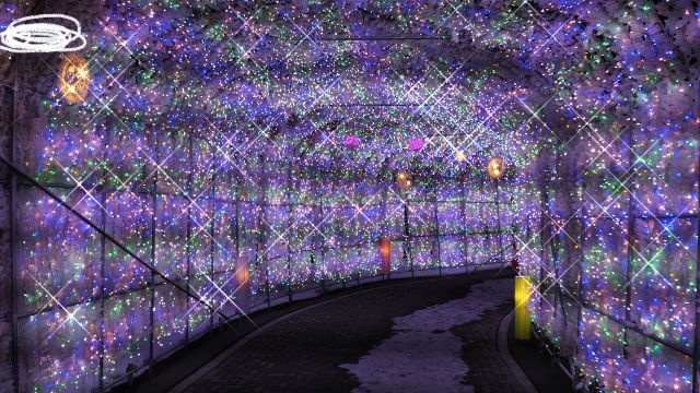 ホテルからすぐのところに設けられていたトンネル。特にイベントが開催されていたわけではないので、地味な感じもするがたくさんの電球が点灯していてきれいだった。点灯時間は19時から22時までとのことで夕食後の散策にちょうどよかった。