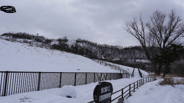 火山科学館裏手より散策路が伸びている。2000年の有珠山噴火により被災した国道や建物が残されており、自然災害の脅威を感じることができるスポットである。冬の時期の訪問だったので遊歩道はごく手前で通行止めとなってしまっていたが、当時のまま止まってしまった遺構を見ることができる。今度、夏の時期に洞爺湖一周を兼ねて訪問する予定。