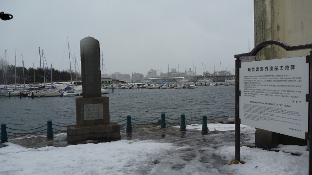 緑の島の脇の護岸にひっそりとたたずむ碑。新島襄がこの場所から当時禁止されていた海外渡航をしたとされる。このとき21歳という若さだったとのことでその行動力には驚かされる。10年後無事帰国し、同志社大学を建学した。ベイエリアにあるのでついでに立ち寄ってみては。