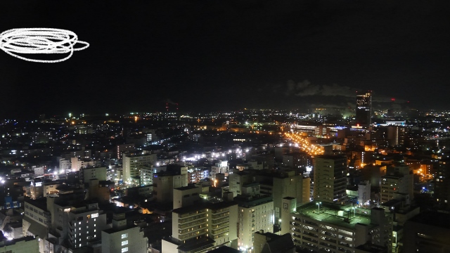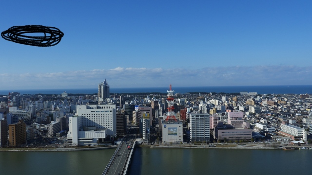 メディアシップからフェリー乗り場方向に約10分ほど進むと朱鷺メッセという高層建築の複合施設にたどり着く。ここの31階フロアには展望室が設けられていて新潟市内の夜景を360度楽しむことができる。当日、併設の日航ホテルに宿泊したのでチェックイン前に立ち寄った。