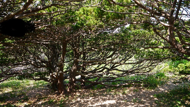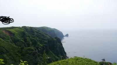 天売島の観光ポイントの一つ。夏のシーズンは自転車でも一方通行があるため多くの人が自転車を借りてから最初に立ち寄る場所はここかと思う。ここに至るのにかなり高度を上げるため自転車をこいで上がるのは難しい。展望地には灯台があり、付近にはウトウの巣である無数の穴が開いている。巣にもどってくるのは夕暮れ時だそうなので、この島で一泊すれば無数のウトウのバードウォッチングが楽しめると思う。振り返れば焼尻島も見え絶景である。雨の日に訪れると後半の写真のようになる。