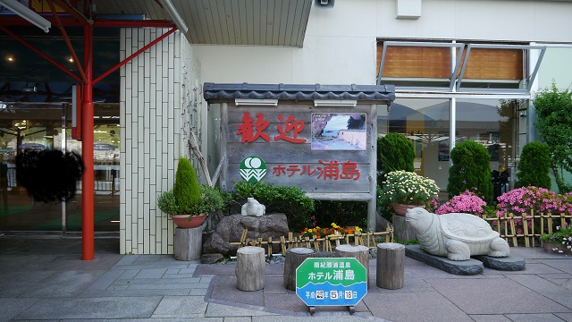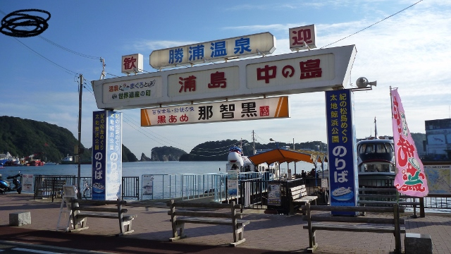 熊野古道歩きの拠点に利用。船でアクセスするホテル。大規模なホテルでかなりの人数が泊まれそう。あまりにも広いので床に誘導用のテープが貼ってある所が珍しい。ここは忘帰洞をはじめとする異なる泉質を持つ計6か所の温泉が楽しめるところが魅力。洞窟風呂など造りも凝っていて雰囲気も十分。設備、接客など総じて満足だが、広さゆえ管理が行き届かないのかかなり経年が見られる部分もあった。