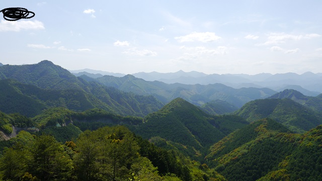 熊野古道の難所、小雲取越コースの中にある数少ない眺望スポットの一つ。古道歩きは基本的に木々の中の道が多い中でのアップダウンを繰り返しながら歩くことになるので、こういった見晴らしの良い場所はなかなか貴重。紀伊山地の山々がどこまでも続く眺望だった。