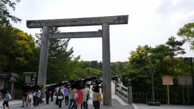 伊勢市駅に近い外宮をお参りした後、路線バスで内宮に到着。こちらは外宮以上に観光客ににぎわっていた。参拝道は広くとられており、正宮までゆっくりと歩きながら巡ることができる。近くにはおかげ横丁があり、のんびりそぞろ歩きをしながら買い物を楽しむことができる。
