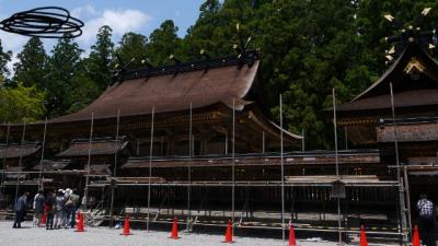 新宮駅から路線バスで1時間ちょっと、世界遺産を構成する熊野三山のひとつ。周辺は熊野川が流れ田園地帯が広がるのどがなところで、道路沿いに飲食店や土産物屋が点在し観光地化されている。神社は階段を上がったところにある。三山の中では色が少なく、地味な印象を受けたが、歴史を感じさせる風格はあった。