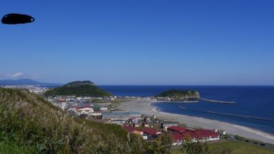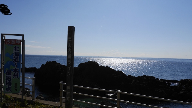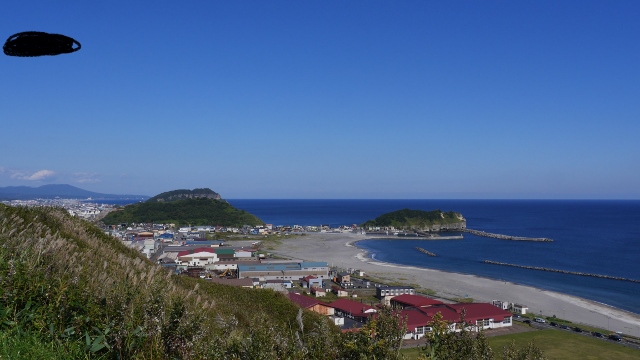 函館市の恵山から函館の市街地に戻る国道の途中にある景勝地。高台の駐車場からは展望台まで遊歩道が設けられている。遊歩道にはクモの巣がかかりあまり立ち寄る人はいない場所なのかもしれない。展望台からは正面に島と遠く本州が見られきれいな景色だった。