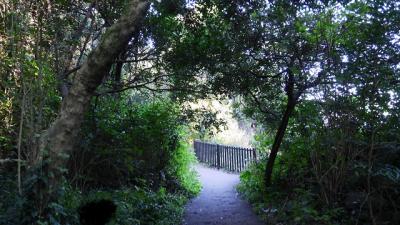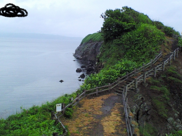 伊豆海洋公園から門脇灯台・吊り橋までのアクセスに利用した遊歩道。城ヶ崎海岸沿いに設けられている。森林コースと海岸線のコースに分かれていて灯台までは森林コースのほうがショートカットになる。海岸コースも常に海岸が見られるわけではない。城ケ崎自然研究路に比べると観光客が多いようだった。
