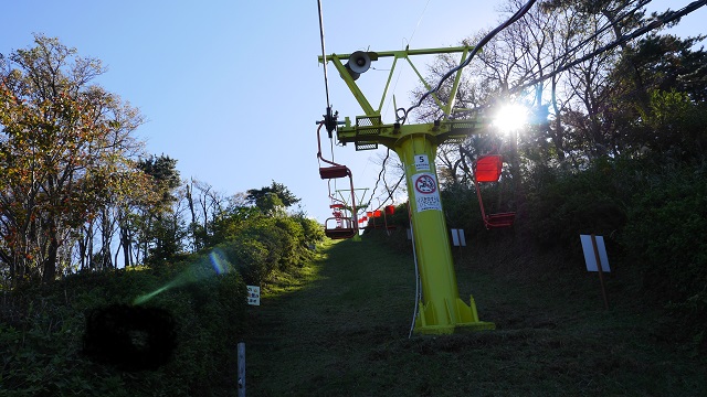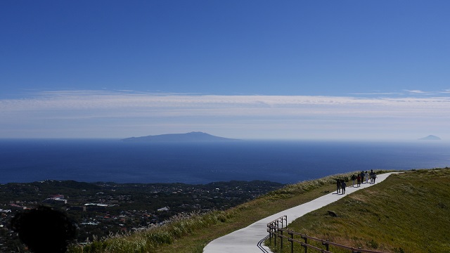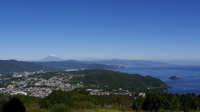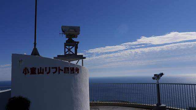 伊東商業高校バス停から徒歩約20分、リフト乗り場へ。山頂へはリフトで手軽に上がることができてよい。展望台からは太平洋の絶景が見渡せるほか、富士山、大室山など360度すばらしい風景が広がっていた。ちょうど晴天にも恵まれたのでその美しさは一層際立っていた。