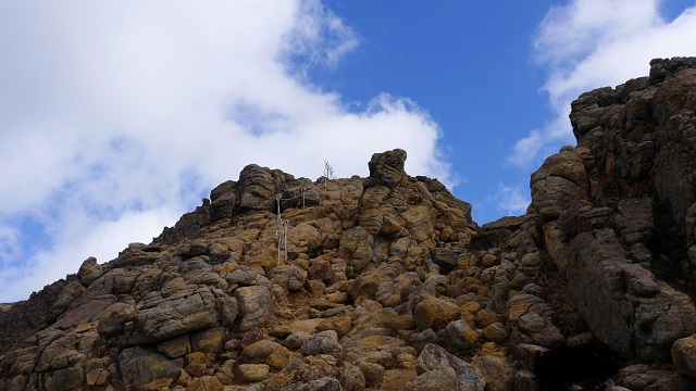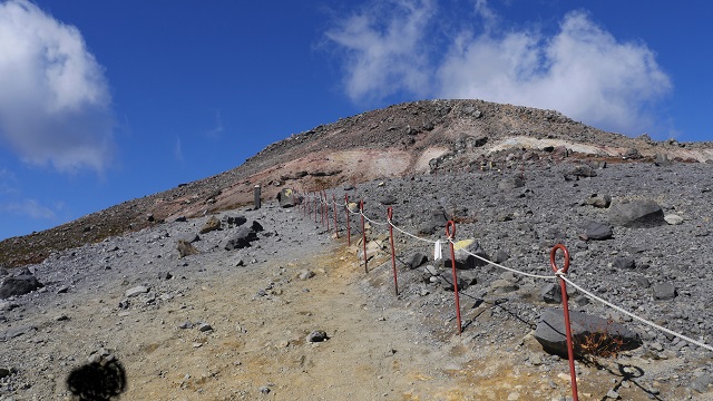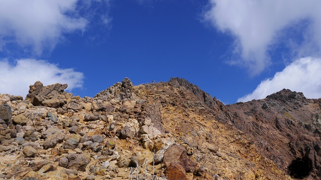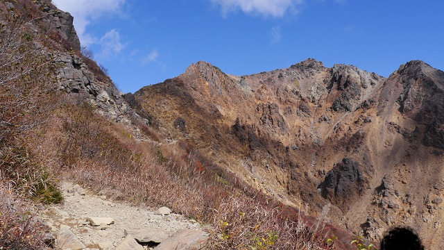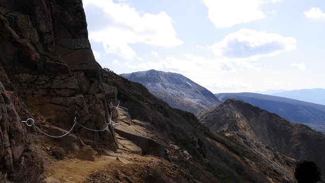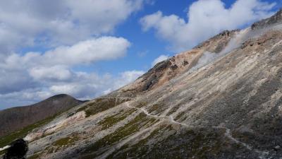 黒磯駅から路線バスで1時間。ロープウェイで中腹まで上がることができる。ここから茶臼岳や朝日岳など縦走をすることができ体力や時間に応じたコースのバリエーションが組める。火山性の山で木々が少ないので眺望は良好。岩場メインだが湿地帯など変化に富んだコースも魅力的。よく整備されている登山道だが荒々しい岩場では足元に注意。また、慎重に進めば大丈夫だが滑落危険個所もあり、壁に這うように進んだ。平日ながら人気の山で特に茶臼岳まではたいへん混雑していた。