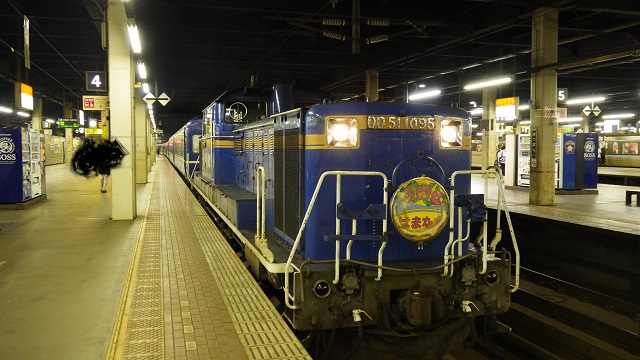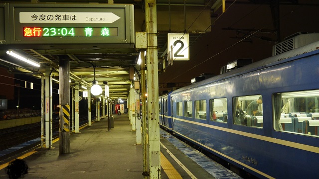 JRに残された最後の定期急行列車かつ絶滅寸前の夜行列車。札幌と青森の間を約8時間で結ぶ。札幌から苫小牧までの利用だったが座席が結構埋まっていて、大きな荷物から青森方面までの乗車とみられ、未だ需要があることに驚く。室蘭あたりまでは降車もあるようだが、同時に乗車もあるので、夜行列車が絶滅寸前の中でも残っている点に納得。90年代半ばくらいまでは上野駅などから東北など各方面にこういった夜行急行列車がいくつか走っていて、座席にあぶれた客は通路に新聞紙を敷いて酒を飲みながら一晩を過ごすような光景を見てきたが、徐々に利用者が減りいつの間にか列車そのものも消えていた。今回、乗車してみて車両とともに20年前の当時の光景が思い出された。車両の老朽化は限界に近いだろうし、新幹線開業もあり近く動きはありそうだが、夜間の札幌から道南方面への足、早朝の札幌方面への足は残しておいてほしい。