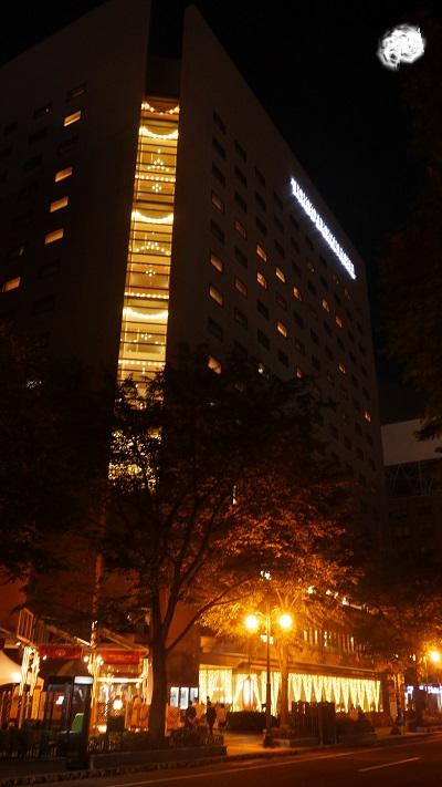 大通公園に隣接する大型のホテル。大通駅からは徒歩で10分くらい。読売新聞や施設内の土産物5%割引などのサービス有。中央吹き抜けの構造が贅沢なつくり。客室はツインで広かったが、割り当てられた部屋が角地にパズルのように組み込んだ部屋のようで入口からベッドまでの動線がコの字型で少し独特だった。BSも対応していたし、特に不満はなかった。
