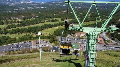大室山山頂への唯一のアクセスルートであるリフト。3連休最終日で天気も良かったこともありチケットを購入後乗車まで50分待ち。幸いスケジュールに余裕があったので後の予定に影響はなかったが、土休日の利用時は注意が必要。リフトからの景色はとてもよく、富士山や太平洋を思う存分に楽しめた。大室山には登山ルートがなく、冒頭にも書いた通り山頂へはリフトを利用することになる。