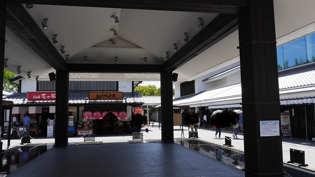 熊本城の端にあるショッピングゾーンで飲食店や土産物屋が立ち並ぶエリア。熊本城との間で無料のシャトルバスが運行されていて大変便利。郷土料理を味わえる店などもあったが、昼時で残念ながら混雑しており別の場所で昼食をとることになった。