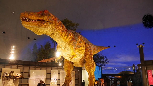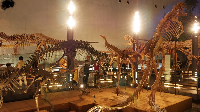 えちぜん鉄道の終着、勝山駅からバスで約10分。国内や諸外国の発掘調査から判明している恐竜の種類や生体、当時の気候や発掘された化石など多岐にわたる展示内容が充実。メインは円形のホールに並ぶ巨大な恐竜群。子供は目で見て、大人は解説を読んで理解を深め、子供から大人まで楽しめる。恐竜がいた世界にタイムスリップといえば大げさかもしれないが、そんな雰囲気を演出する展示だった。あまりに小さい子供には刺激が強いようで、怖がって帰りたいとひたすら泣き叫ぶ子供もいたので、子のタイプによっては注意が必要。