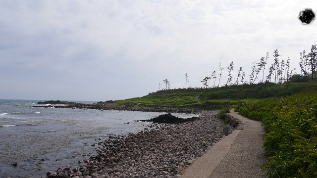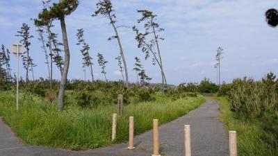 越前松島付近から東尋坊付近まで断続的に続く海岸遊歩道。東尋坊から松島まで往路は道路上を走行したが、復路は遊歩道を走行した。階段上のところが少なくスロープで整備されているので自転車でも走りやすくバリアフリーでもあった。荒磯の名の通り、荒々しい海岸線の風景を満喫することができた。