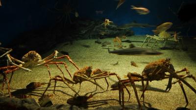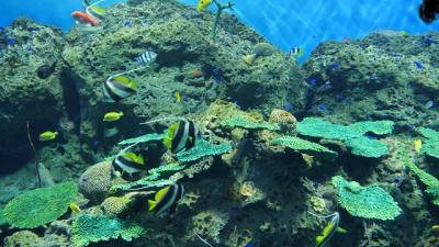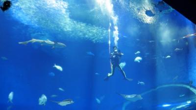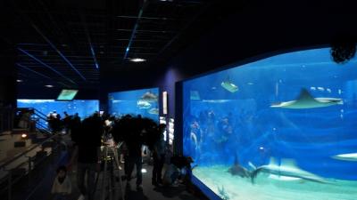 大洗海岸沿いにある水族館。大洗駅などから路線バスのバス停あり。展示されている生物の数が充実していて、水陸両方の習性が見られる展示方法や子供が見やすいような配慮がされているなどいろいろと工夫されている印象。巨大水槽に泳ぐ数多くの魚が圧巻で見ていて楽しめる。時間帯でイルカのショーもあるようだがGWの時期でかなり施設内混雑しており、入場制限がありで見られなかった。混んでいてじっくり鑑賞はできなかったが見ごたえはあった。
