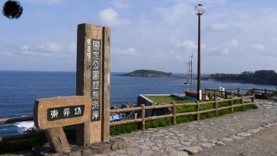 えちぜん鉄道三国駅で自転車を借り、ゆるやかな登りが続く道を約3km。福井県を代表する景勝地、東尋坊に着く。8時前に到着したときはあまり観光客の姿もなく、荒々しい断崖絶壁をゆっくりと鑑賞することができた。その後、越前松島などをまわり、10時過ぎに再度訪れた時はツアー客などで混雑していた。周辺は遊歩道が整備されていて、景色を堪能しやすい。個人的な感想として、映像で見た時のほうが迫力を感じ、実際に見た時はそんなにでもなかったような気がした。天気には恵まれたのできれいな写真を撮ることができた点は満足。