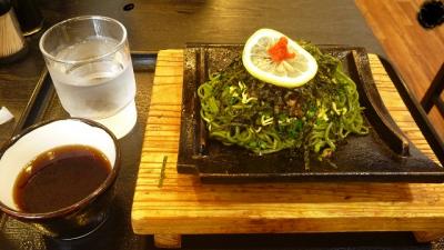 唐戸市場そばの複合施設・カモンワーフ2階にある飲食店。旅先ではご当地グルメを満喫するのも旅行の楽しみということで看板にも掲げられている瓦そばを注文してみた。あつあつの瓦に盛られた麺は茶そば。一部分がパリパリにあげられており、これを独特のつゆにつけてすする。全国的に普及はしないB級グルメといったところだが、個人的には好きな味だったので満足。