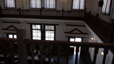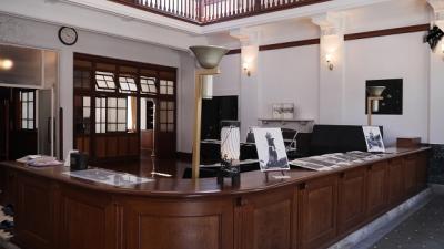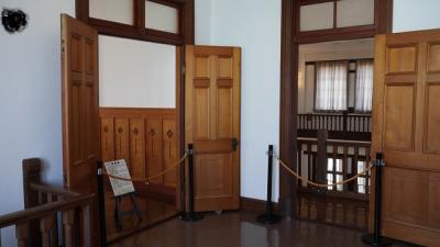 えちぜん鉄道三国駅から海のほうに向かって進むと、歴史ある街並みが連なる一角があり、そのうちの一つに旧森田銀行本店がある。北前船による廻船業を生業とした豪商の一人、森田家が創業した銀行。内部は往時を忍ばせる豪華なつくりで、かつての繁栄ぶりが感じられる。