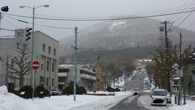 ベイエリアから基坂に向かって伸びる道の真ん中に立つ大きな記念碑。明治9年7月の明治天皇函館上陸を記念し、昭和10年に建てられたものだそう。台座の上に鎮座する鳳凰は羽を広げてかっこいい。通算3度も訪れたことから三蹤碑という別名もあるそうです。