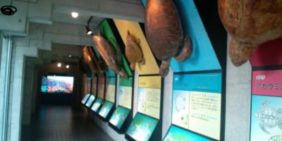 ウミガメが産卵にくる日和佐ならではともいえる博物館。2階建て構造で、1階はウミガメの剥製や世界のウミガメ紹介、生態や水槽展示など。2階には映像によるウミガメの紹介となっている。ここの施設を訪れたあと大浜海岸にも訪れ、ウミガメへの想いをはせてみた。