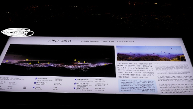 天覧台は兵庫県神戸市の六甲ケーブルの山上駅そばにある夜景鑑賞スポット。駅から階段を上がりすぐのところにあるのでケーブルの時間に合わせて鑑賞ができた。神戸の夜景は日本三大夜景とされているだけに眼下の街並みや海の景色は大変きれいだった。
