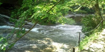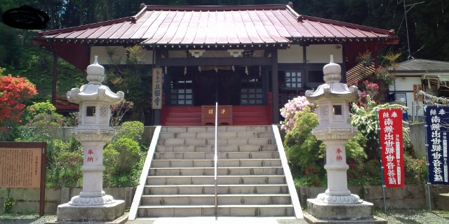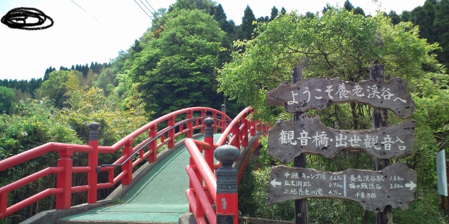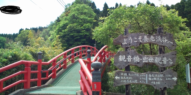 養老渓谷ハイキングコースの一つである弘文洞跡コースの入口付近にある観音様。絵になる赤い橋を渡ると少し険しい地形の中にたたずんでいる。開運招福の観音様として親しまれているとのことで、散策ついでに開運祈願をするのも良いのではないかと思う。