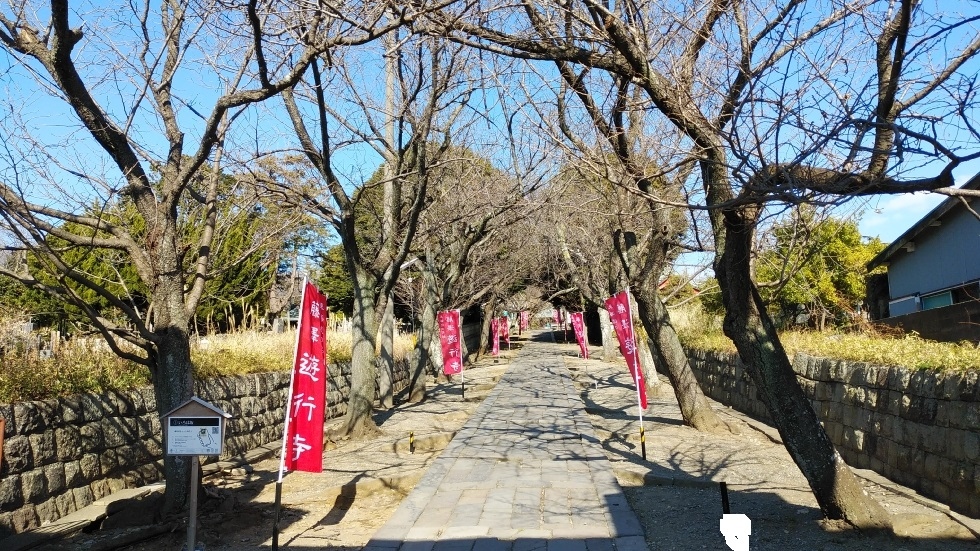 遊行寺の本堂脇から長生院に向かって細く緩やかな上り坂の参道が延びていた。特に参拝客の姿は見られず、落ち着いた雰囲気が感じられた。