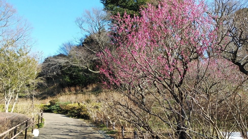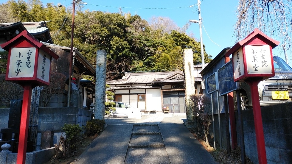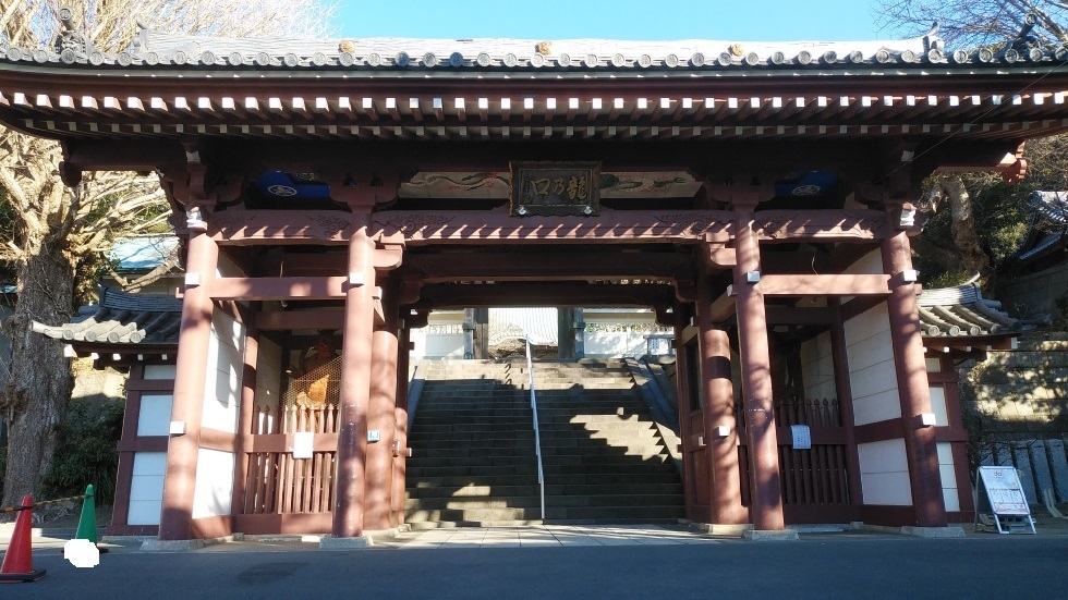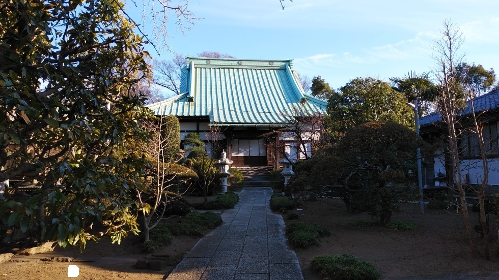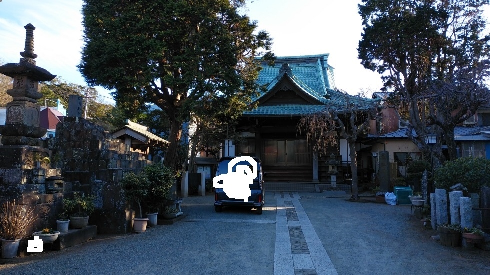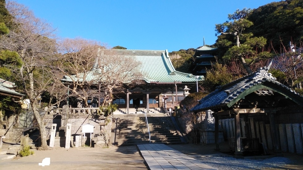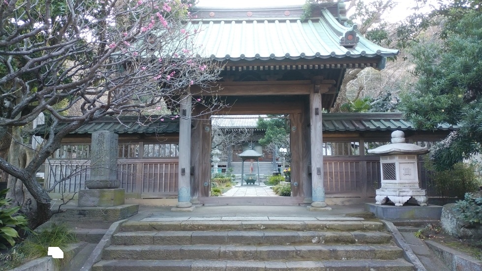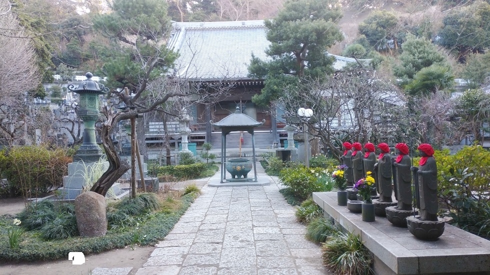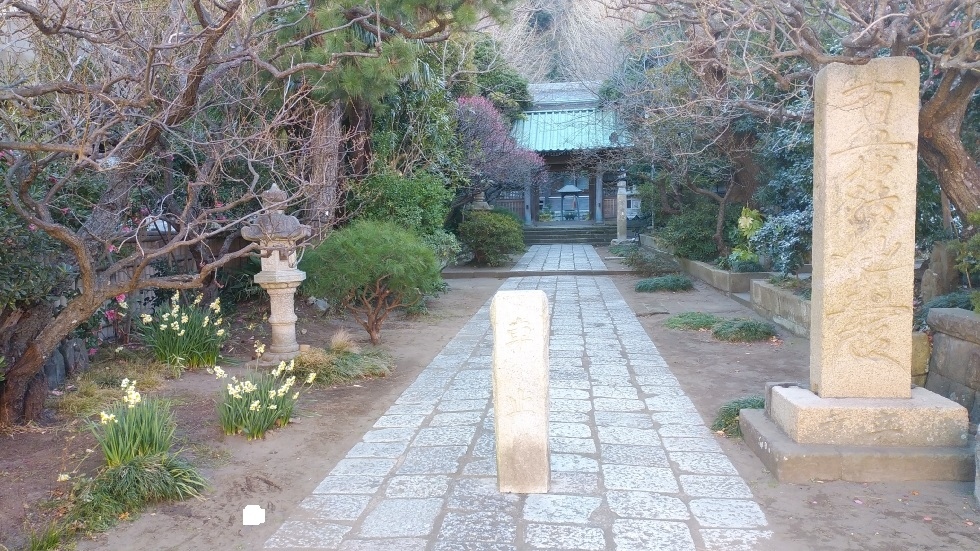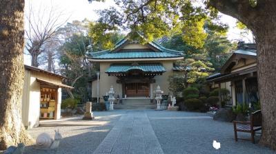 背後に片瀬山公園のある住宅街で、山門までは短いながら植物を楽しめる雰囲気が感じられる参道があった。境内にも植物が豊富で花の時期は楽しめそうだった。まだ梅の時期には早かったがしだれ梅なども見られた。落ち着いた雰囲気のある寺院だった。