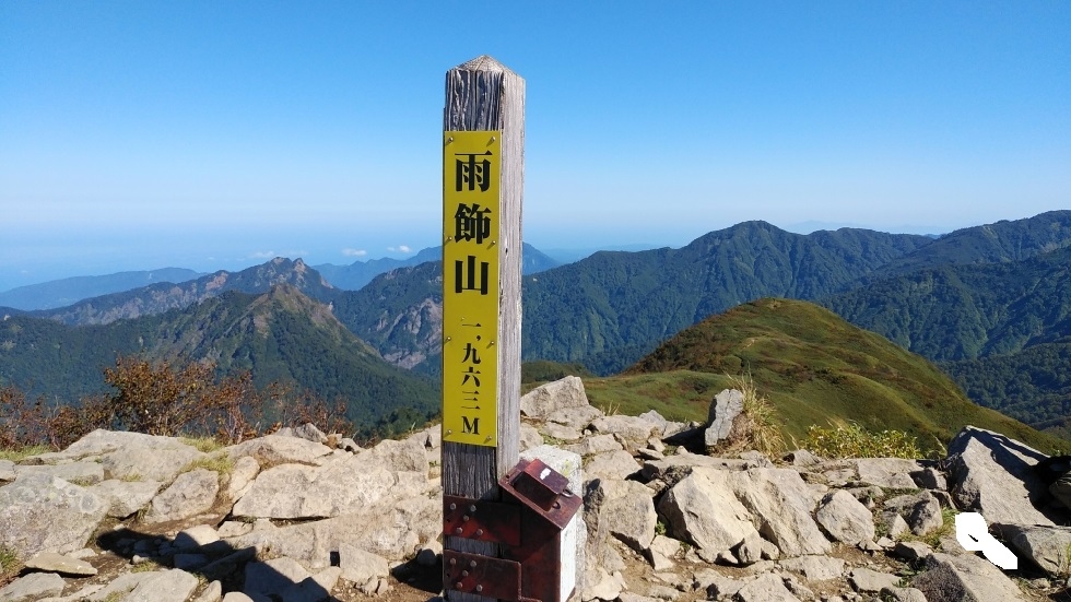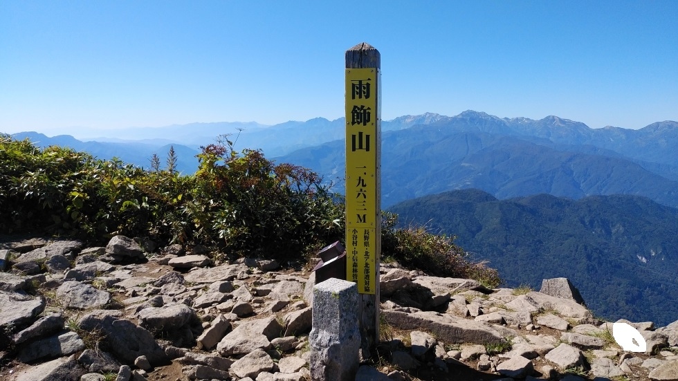 雨飾高原キャンプ場から山頂まで3.7キロ、標高差897メートル。登り2時間20分、下り2時間50分だった(下りは転倒防止のためゆっくり歩いた)。