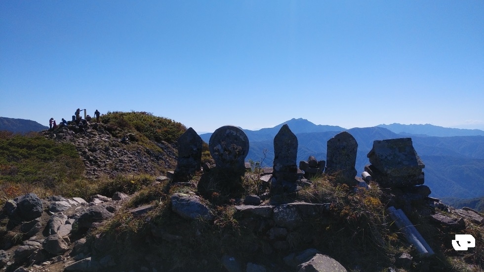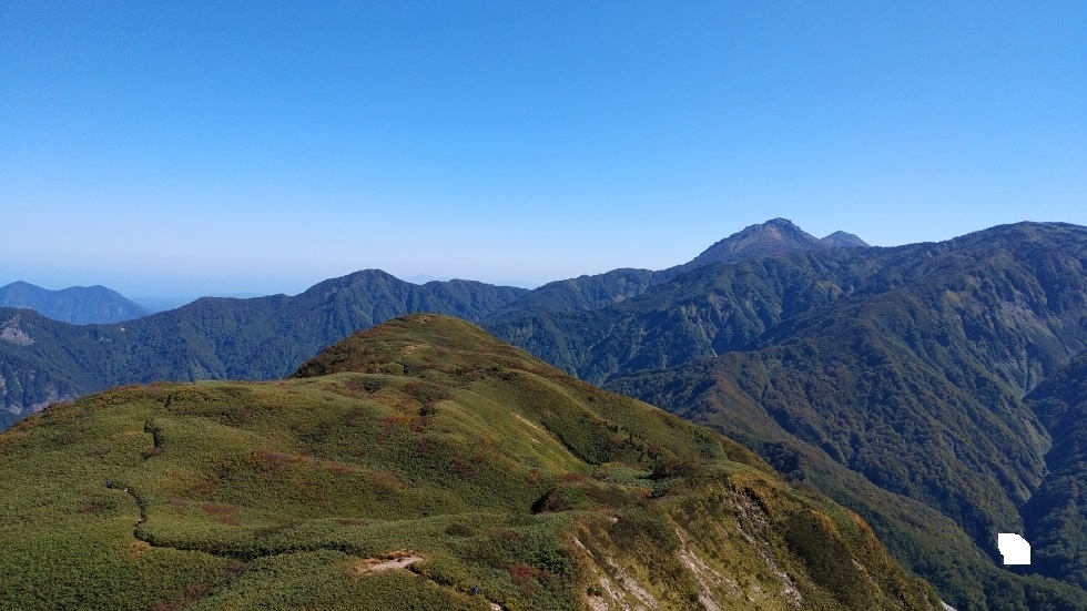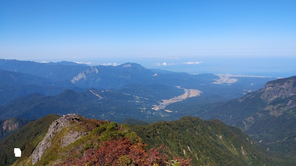 比較的平たんだった登山道は山頂に向かって最後の急登があった。こちらを克服すると山頂へ。2つの頂を有するがいずれも狭く、10人くらいで窮屈な印象だった。眺望はすぐれ日本海や糸魚川方面の街並み、