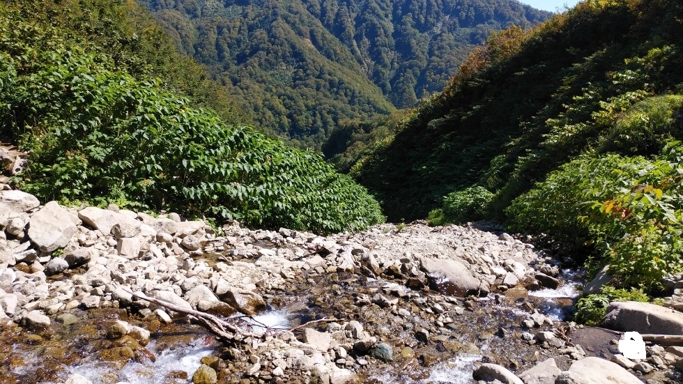 湿地帯が終わると本格的な登山となる。樹林帯が続くが、徐々に岩が多く傾斜もきつくなってくる。そして、荒菅沢出会に向かっていったん下る。