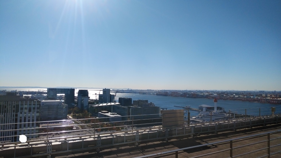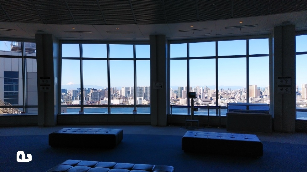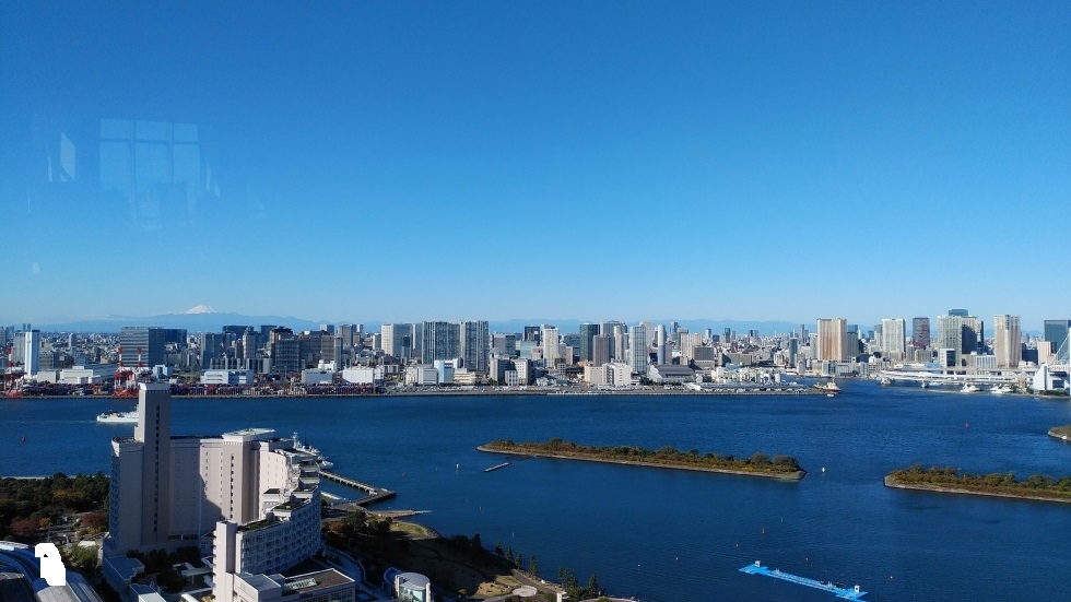 景色については富士山側を除く270度の眺望。シンボルプロムナード公園や東京湾、千葉方面の景色が見られるが、富士山はかろうじて見える程度。富士山を見る場合は西棟20階にフリースペースがあり、そこから見ることができた。- 旅行時期