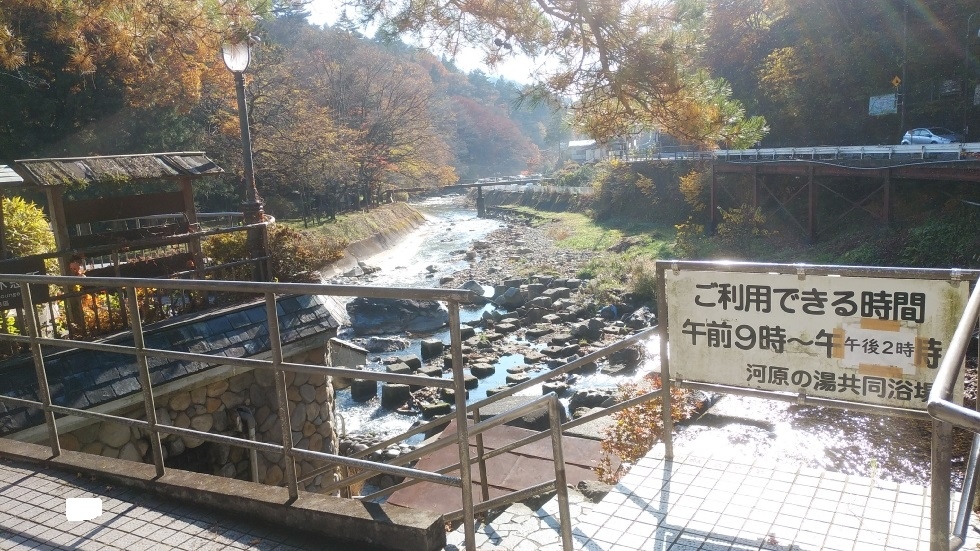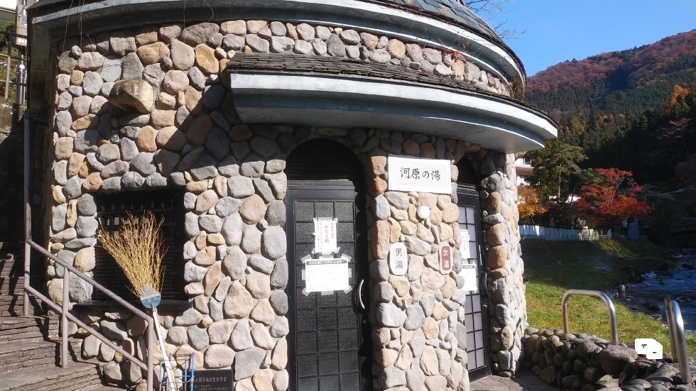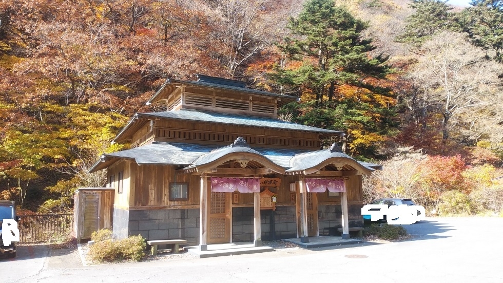 中之条駅から四万温泉行きの路線バスで約30分、終点下車徒歩1分くらいのところにある共同浴場。四万グランドホテルやたむらといったホテルが建つそばにあり、温泉街ではにぎやかな立地となっていた。9時からオープンし入浴料は寸志。