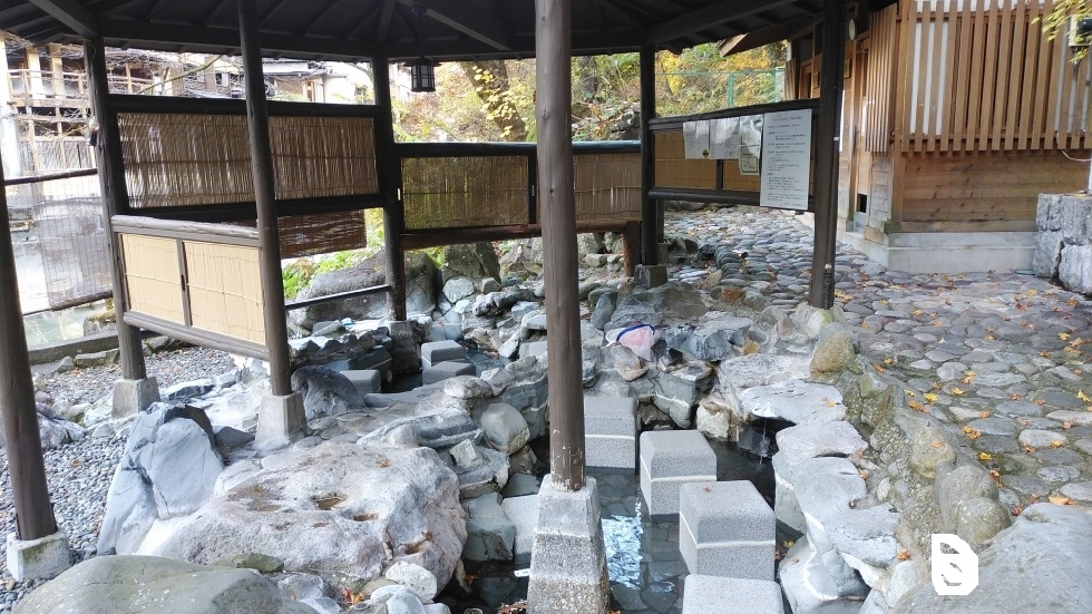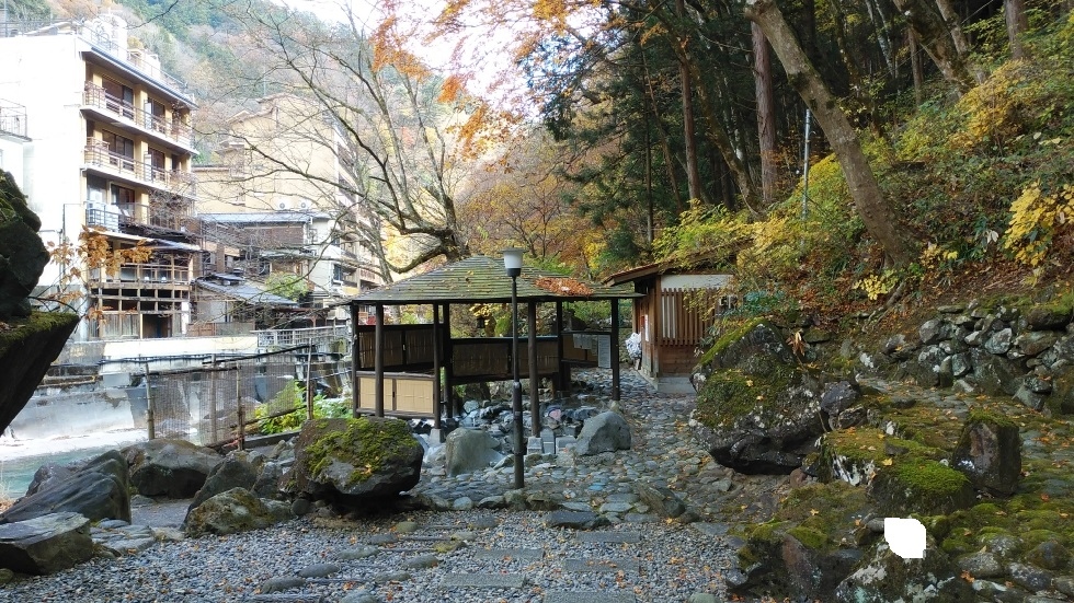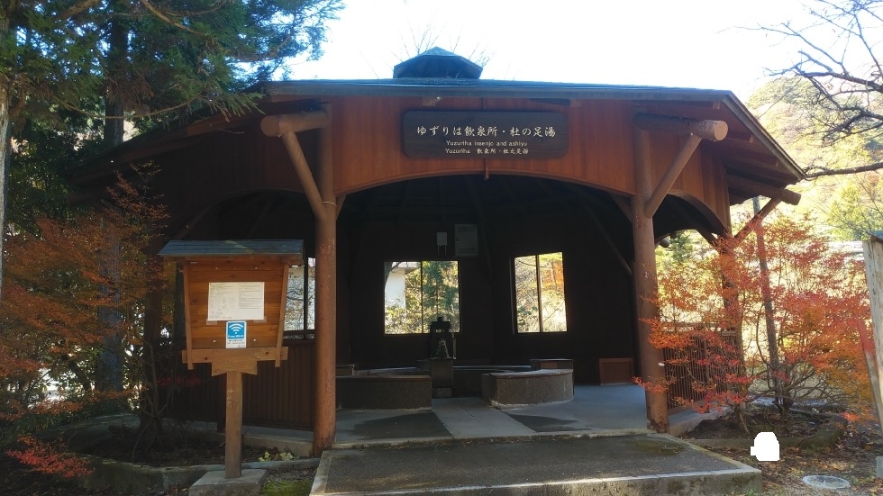 四万温泉バス停から徒歩12分くらいのところにある飲泉所。紅葉の時期は四万温泉ぐるりんバスもあり。ゆずりは地区の旅館が点在する木々の多いエリアにあり、比較的よく整備されていると感じた。