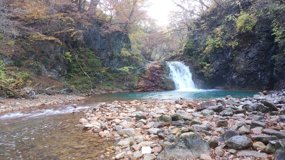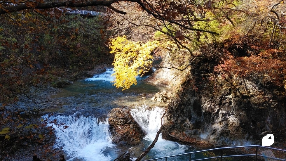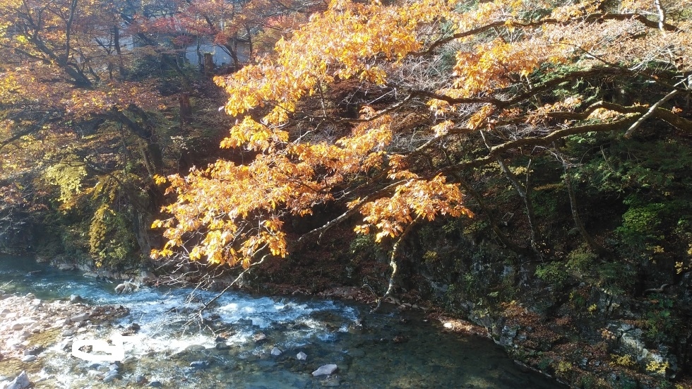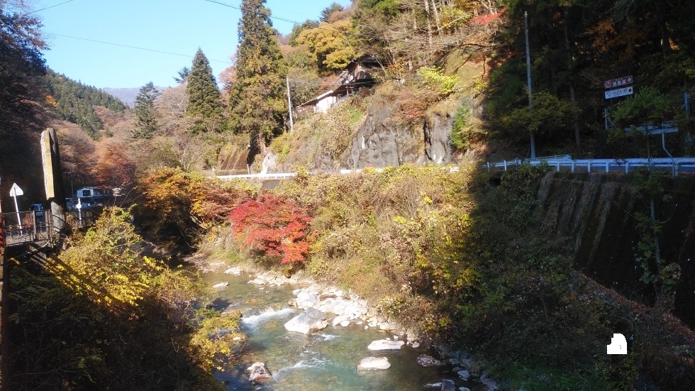 四万温泉バス停から3キロくらいのところにあるスポット。四万温泉協会から電動自転車を借りてアクセスした。また、紅葉時期は四万温泉ぐるりんバスでアクセス可能。